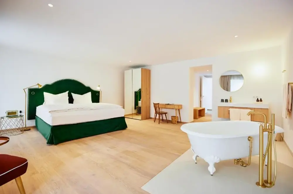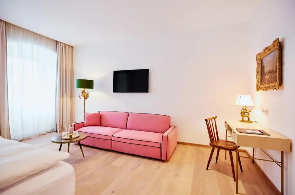 Das Boutiquehotel Zum Goldenen Hirschen liegt zentral in Gmunden an der Linzerstraße 4, direkt zwischen historischen Gebäuden wie dem Seeschloss und dem Schloss Weyer. Das Haus bietet eine Mischung aus traditionellem Charme und modernem Komfort mit einem Fokus auf individuelle Gestaltung und hochwertige Materialien. Besonders hervorgehoben werden die sorgfältig ausgestatteten Räume, darunter auch Familienzimmer, sowie ein Restaurant mit regional inspirierter Küche. Ein Fitnesscenter steht den Gästen zur Verfügung, ergänzt durch einen Wellnessbereich mit Spa-Angeboten. Die Lage ist ideal für Kulturinteressierte: In unmittelbarer Nähe befinden sich das Segafredo Café am See sowie lokale Gastronomie wie die Toscana Park oder Moser CooknCake Box. Für Naturliebhaber sind Skilifte wie der Schlepplift Edeltal oder die Feuerkogelbahn innerhalb weniger Kilometer erreichbar, während der Flughafen Linz rund 44 km entfernt liegt. Behindertengerechte Einrichtungen sorgen zudem für barrierefreie Zugänglichkeit.